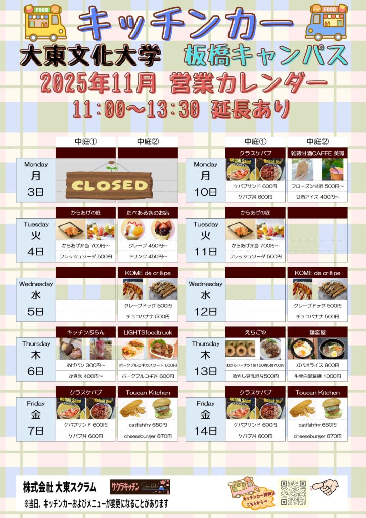 キッチンカーカレンダー