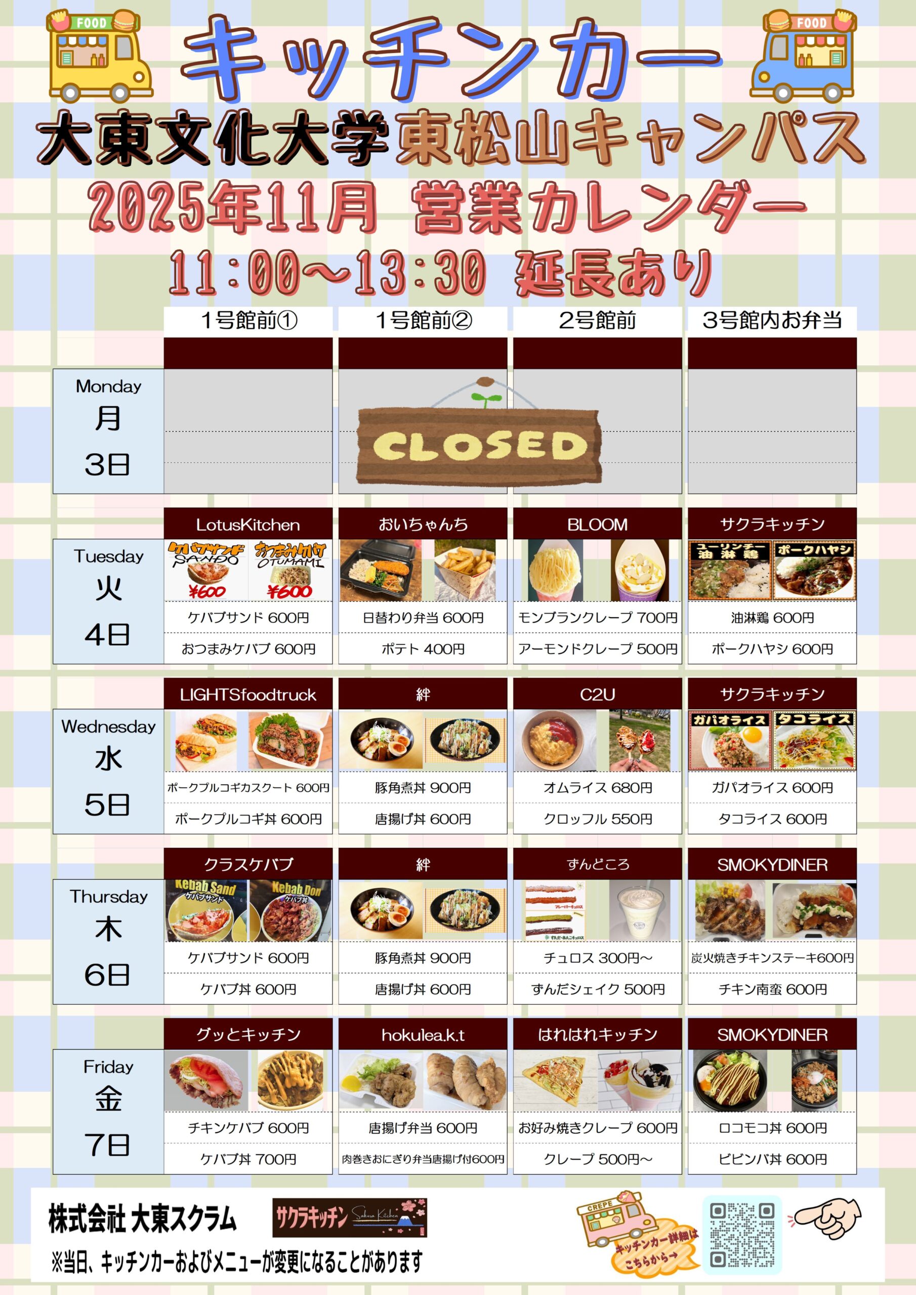 東松山キャンパス 11月3日(月)〜11月7日(金)