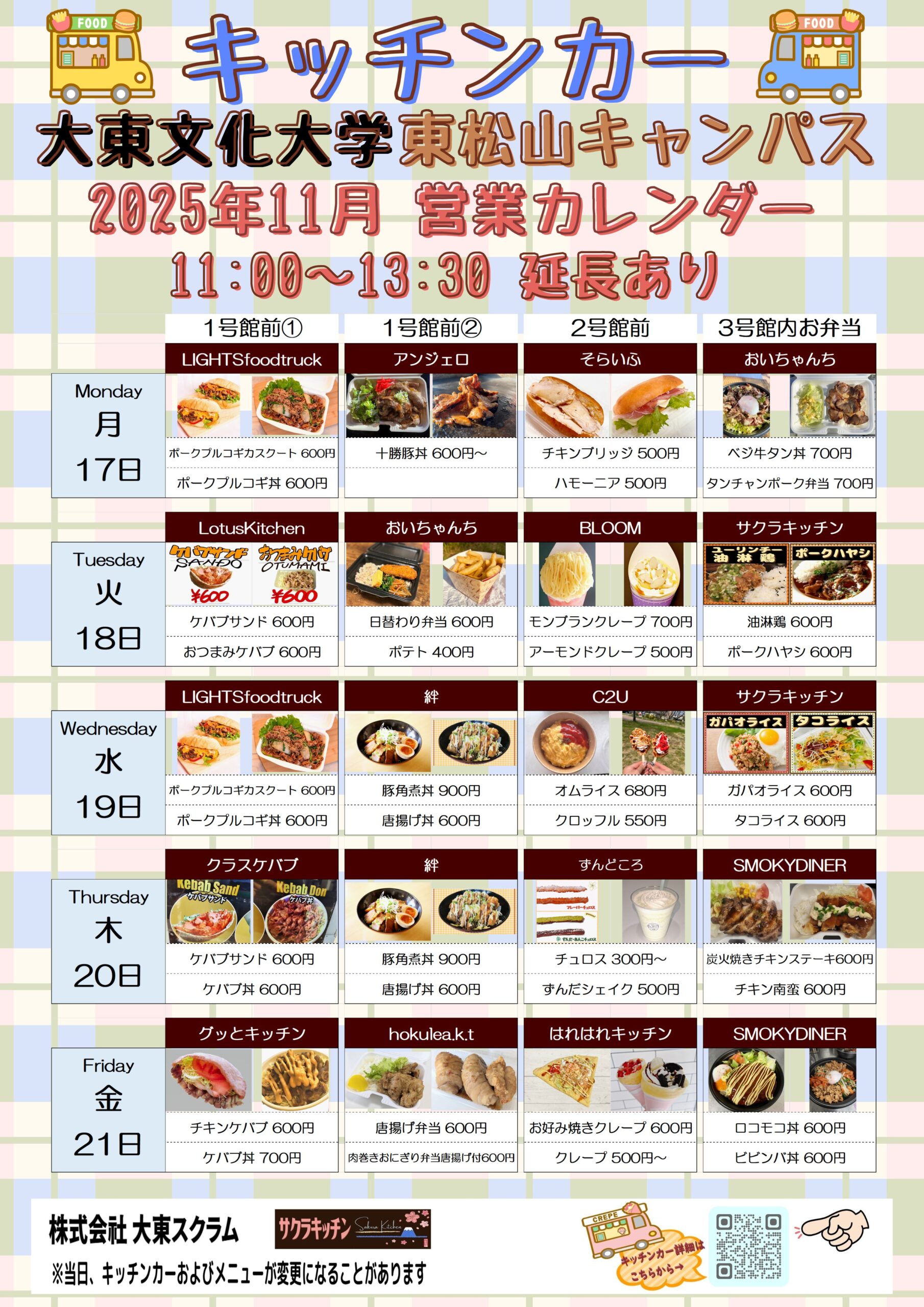 東松山キャンパス 11月17日(月)〜11月21日(金)