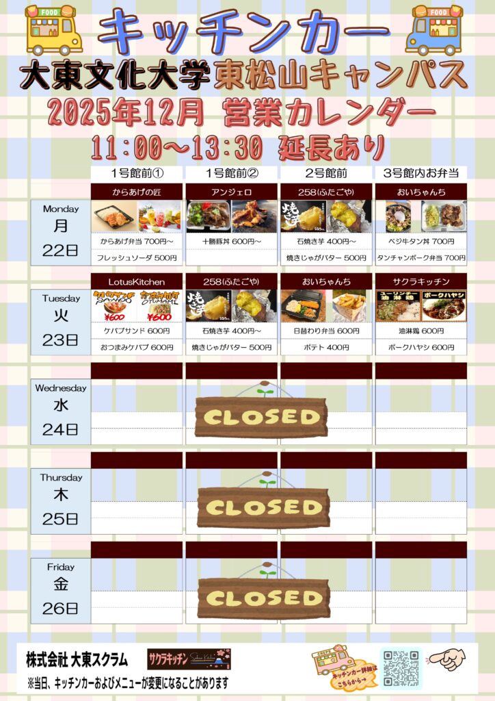 東松山キャンパス 12月22日(月)〜12月26日(金)