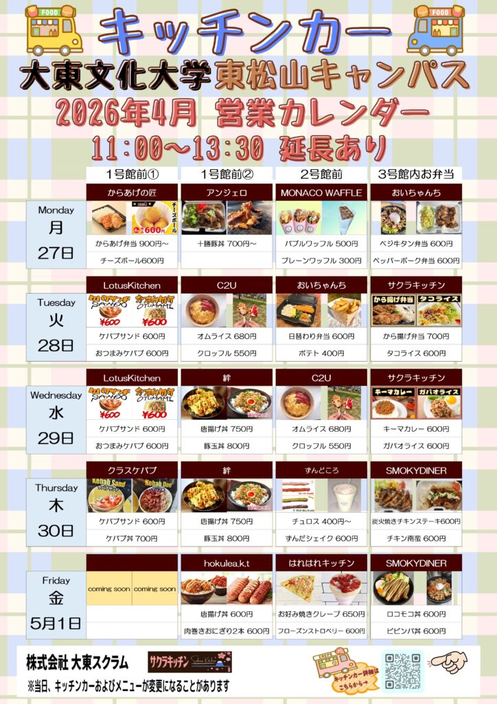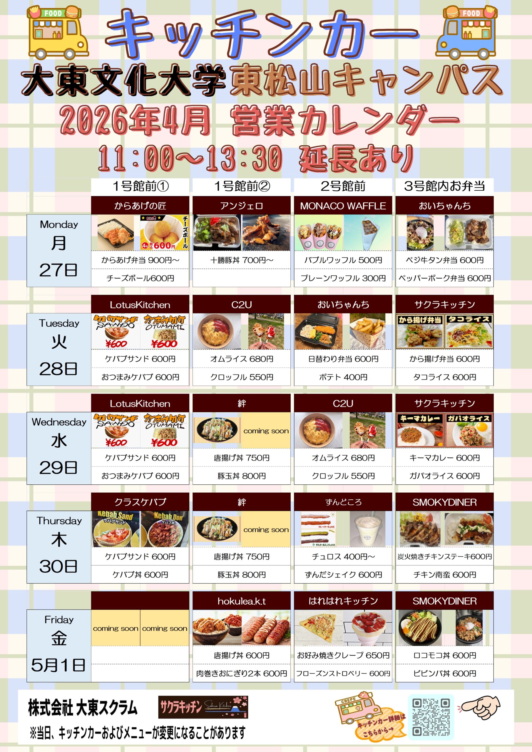 東松山キャンパス 4月27日(月)〜5月1日(金)